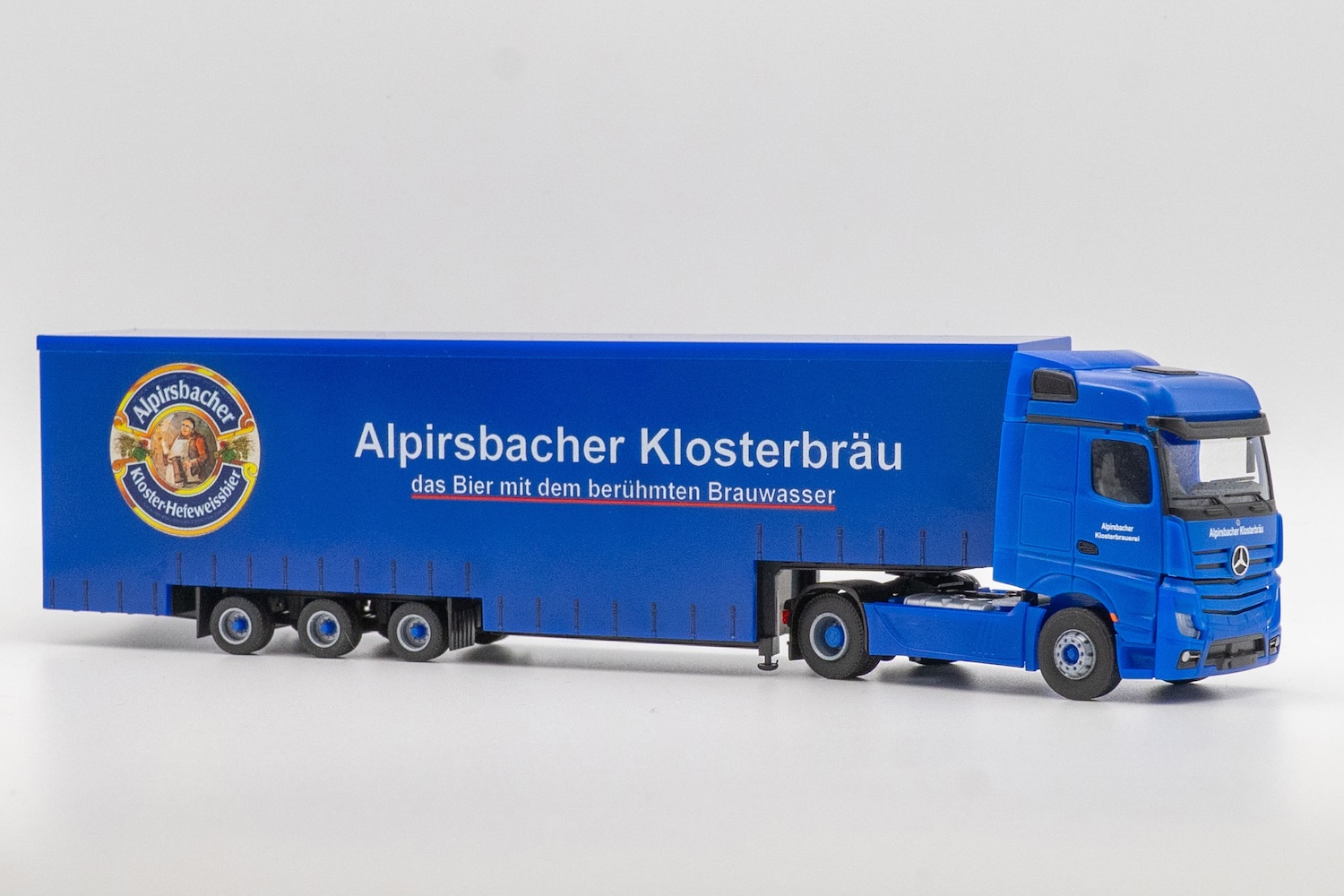 Produktinformationen "Actros mit Meusburger Getränkeauflieger "Alpirsbacher Kloster-Hefeweissbier" "